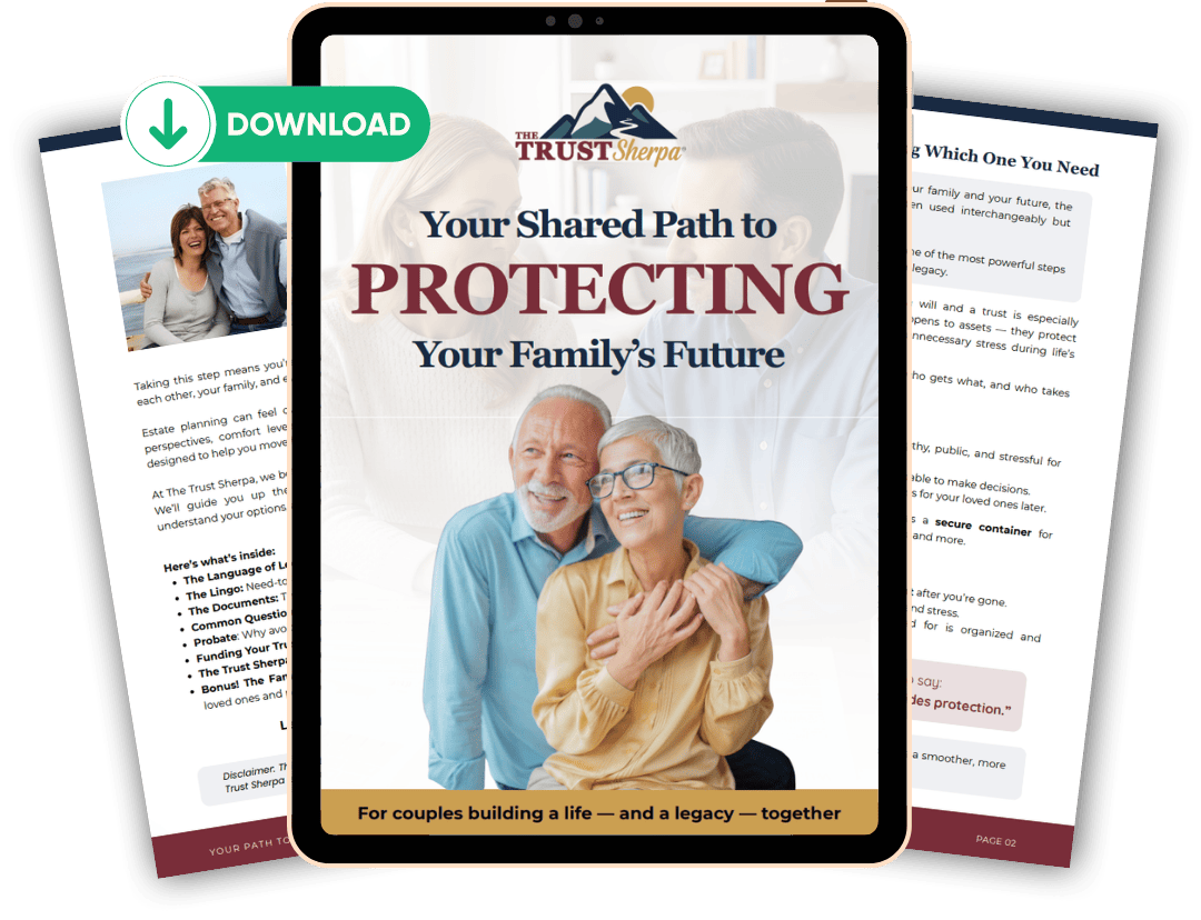 Disclosure: The Trust Sherpa is not an attorney or CPA and does not provide legal or tax advice. All information shared is for educational purposes only, and designed to help you understand your options to make informed decisions about your estate plan. For legal or tax-related questions, please consult with a licensed estate planning attorney or qualified tax professional. Our role is to guide you through the process, help clarify your goals, and connect you with the right resources to complete and fund your trust.